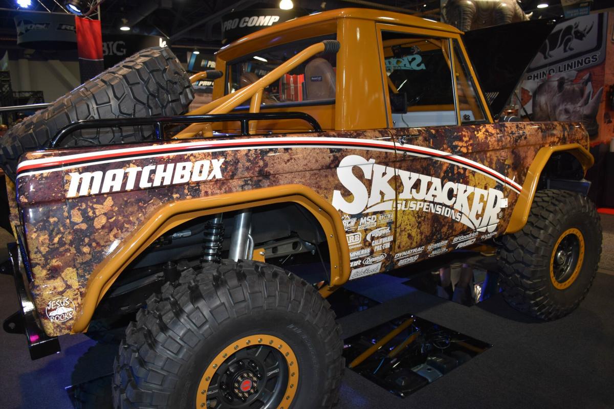 By that time, the company expanded and had a partnership with Mattel toy company, which authorized the use of the Skyjacker logo on toy cars. After the ’74 Bronco was completed and shown at the SEMA Show, it was miniaturized for the Matchbox line of toy cars.